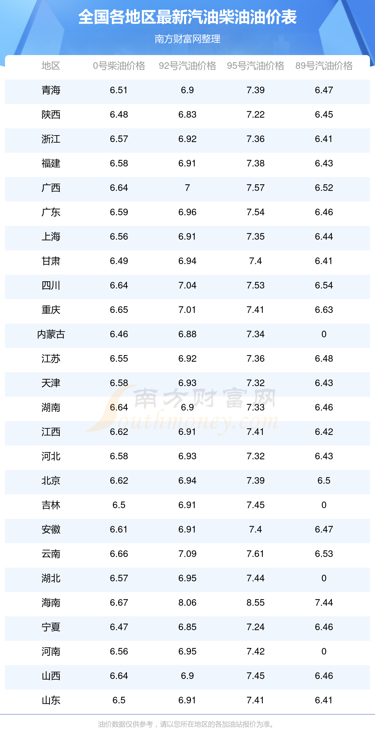 本站提供的油價數(shù)據(jù)僅供參考,具體數(shù)據(jù)以加油站報價為準。