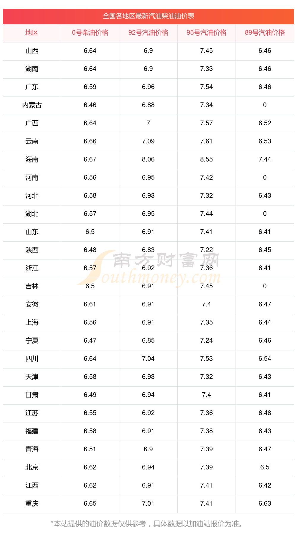 2025年11月16日全國油價(jià)調(diào)整及最新汽油價(jià)格表