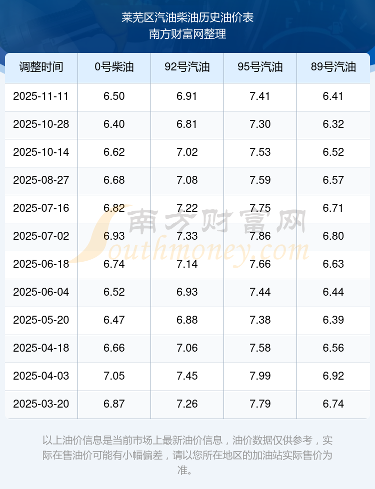 2025年萊蕪區(qū)油價(jià)調(diào)整時(shí)間表