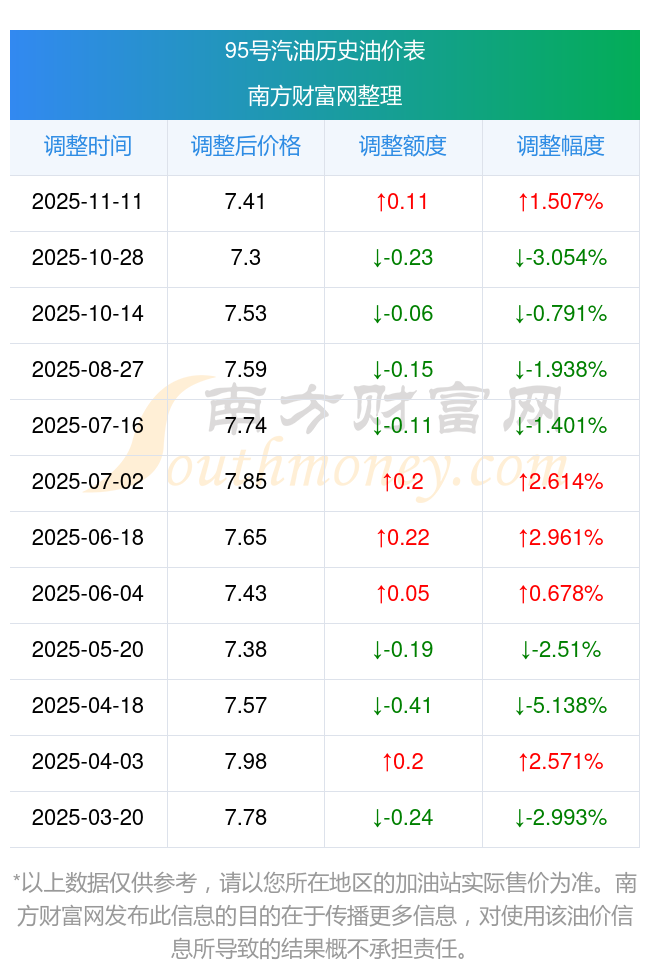 汽油價格調整最新消息:下一輪油價調整時間11月24日24時。重慶汽油、柴油11月16日每升最新價格為11月11日調整后的價格,92號汽油為7.01元,上漲了0.1元;95號汽油為7.41元,上漲了0.11元;89號汽油為6.63元,上漲了0.09;0號柴油為6.65元,上漲了0.1元。
