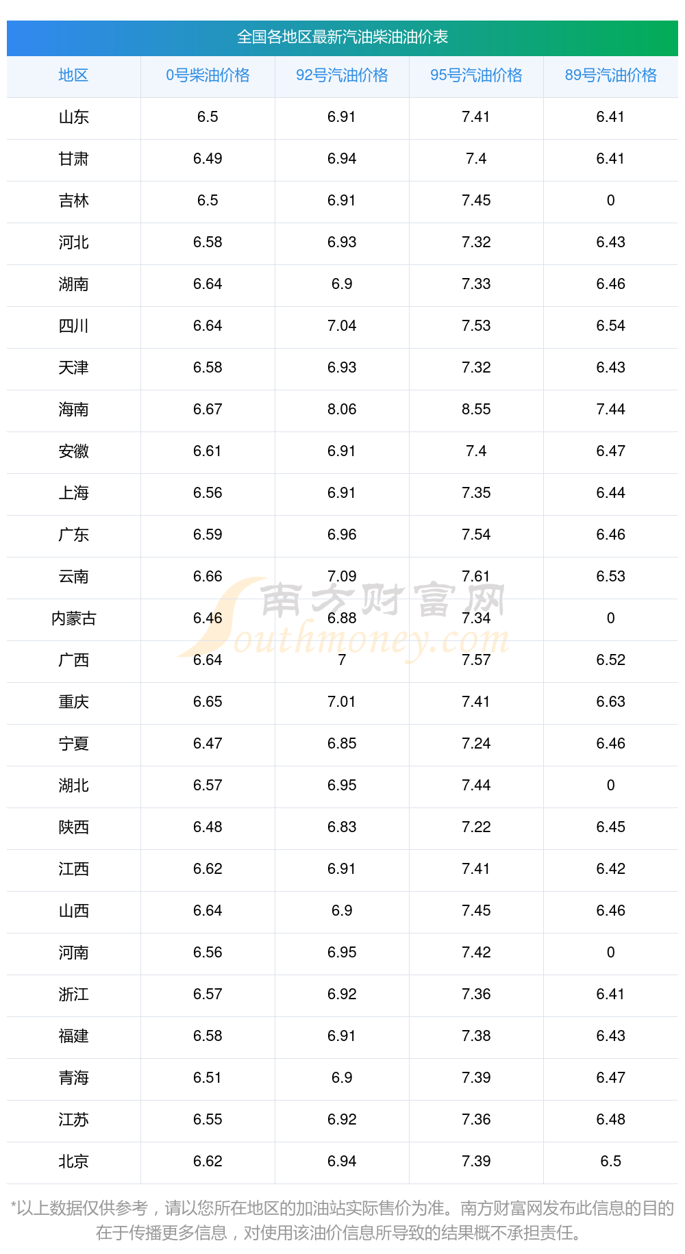 2025年11月16日全國油價(jià)調(diào)整及最新汽油價(jià)格表