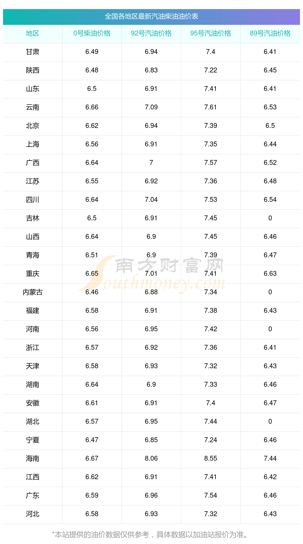 2025年11月16日全國各地油價調(diào)整及最新汽油價格表