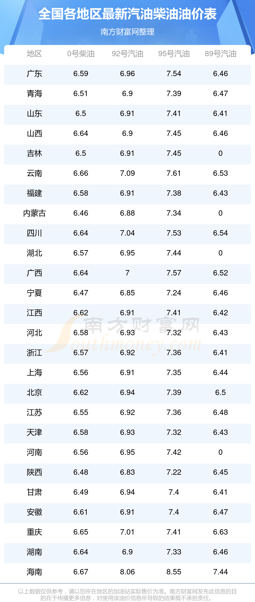 全國(guó)89號(hào)汽油11月16日最新平均價(jià)格為7元每升(根據(jù)11月11日油價(jià)調(diào)整后計(jì)算),其中全國(guó)89號(hào)汽油最低為浙江,價(jià)格6.41元/升,89號(hào)汽油最高為海南,價(jià)格7.44元/升。下一輪油價(jià)調(diào)整時(shí)間11月24日24時(shí),距離現(xiàn)在還有8.42天。