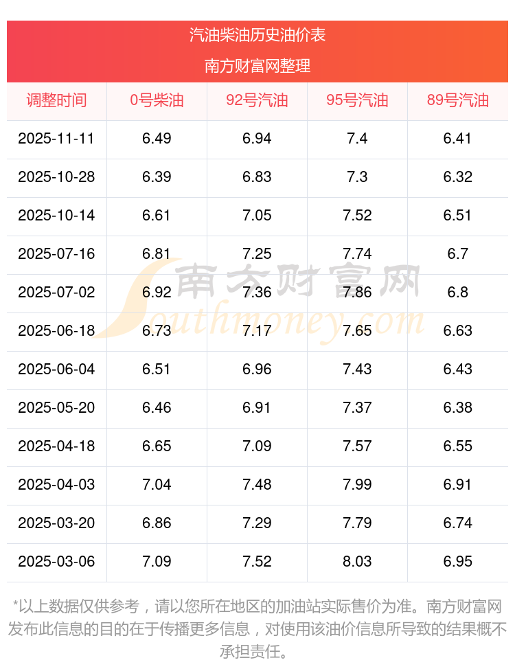 2025年汽油柴油油價調(diào)整一覽表