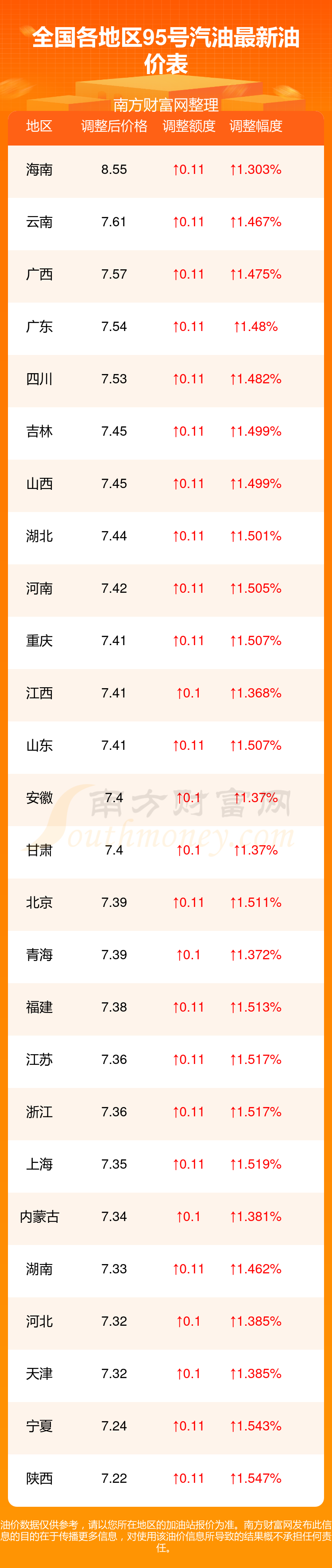 以上油價信息是當(dāng)前市場上最新油價信息,油價數(shù)據(jù)僅供參考,實際在售油價可能有小幅偏差,請以您所在地區(qū)的加油站實際售價為準(zhǔn)。