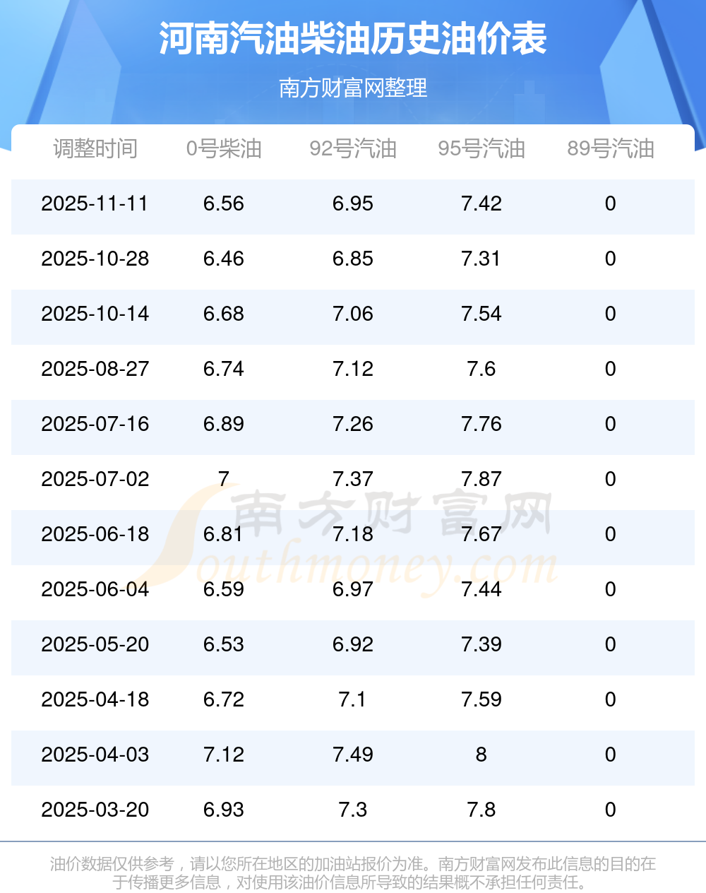 (11月16日)全國油價一覽表
