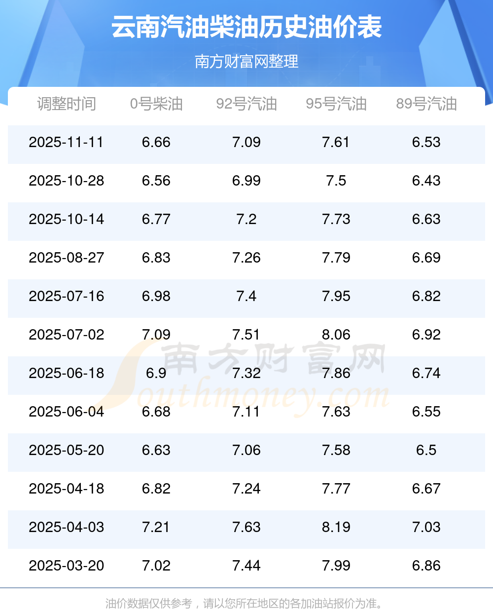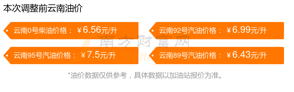 云南95號(hào)汽油油價(jià)調(diào)整價(jià)格表