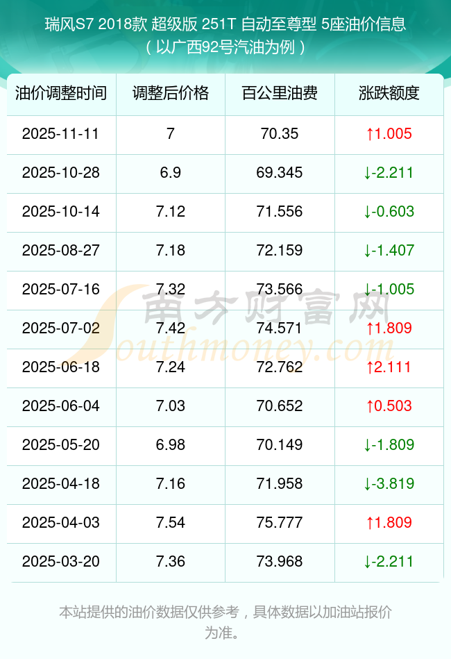 以上油耗數(shù)據(jù)由南方財富網(wǎng)整理提供,僅供參考。