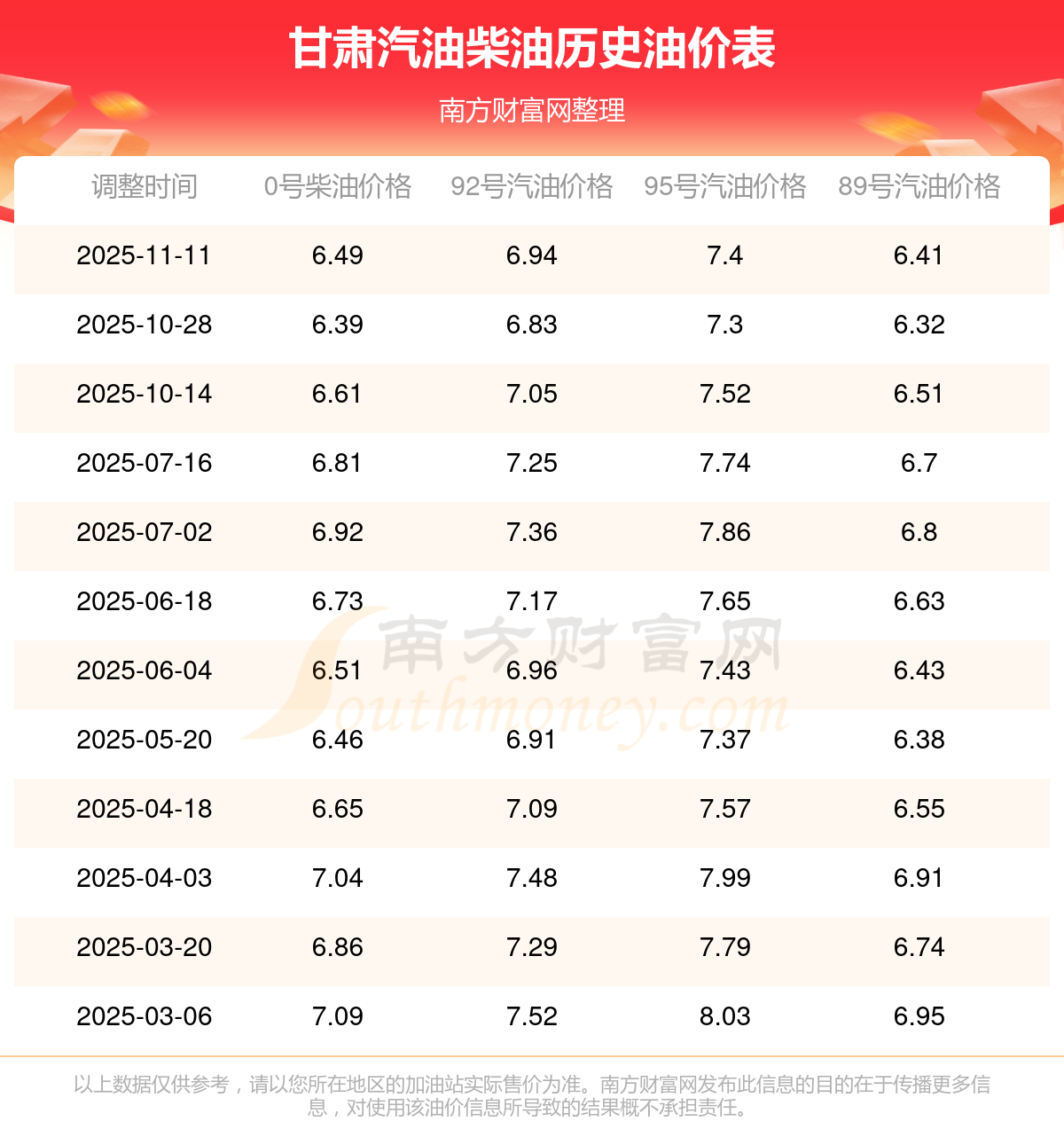 (11月16日)92、95號(hào)汽油價(jià)格一覽表