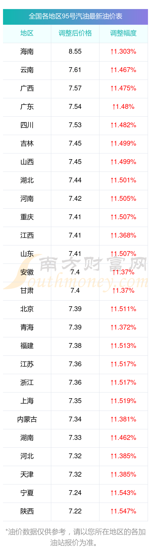 以上油價(jià)信息是當(dāng)前市場上最新油價(jià)信息,油價(jià)數(shù)據(jù)僅供參考,實(shí)際在售油價(jià)可能有小幅偏差,請以您所在地區(qū)的加油站實(shí)際售價(jià)為準(zhǔn)。