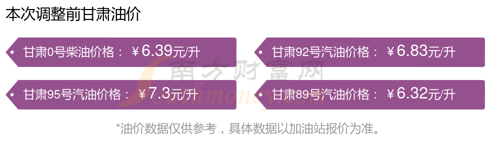 甘肅92號汽油油價調(diào)整表