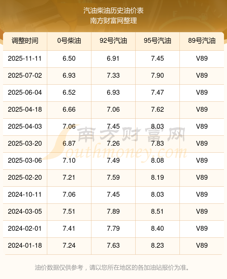 2025年95號(hào)汽油價(jià)格一覽表