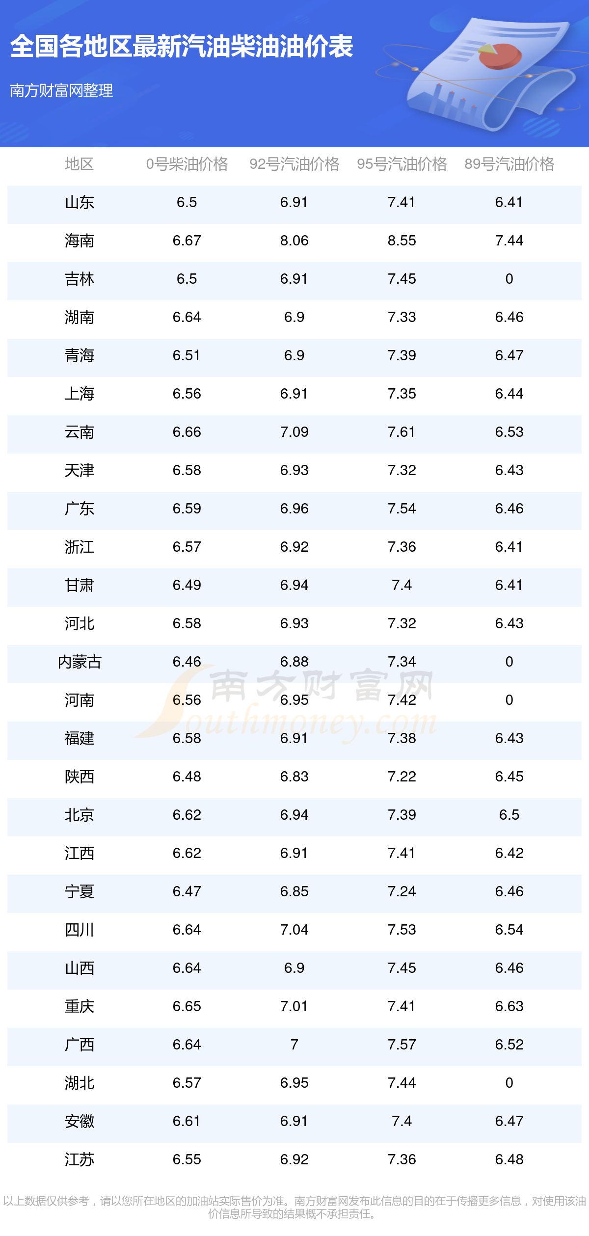 油價調整最新消息:這一輪油價調整的時間是11月11日,調整后全國油價的具體價格為:92號汽油平均價格為7元每升,其中,最低的是陜西,6.83元每升,最高的是海南,8.06元每升。95號汽油平均價格為7元每升,其中,最低的是陜西,7.22元每升,最高的是海南,8.55元每升。0號柴油平均價格為:7元每升,其中,最低的是內蒙古,6.46元每升,最高的是海南,6.67元每升。89號汽油平均價格為7元每升,其中,最低的是浙江,6.41元每升,最高的是海南,7.44元每升。下一輪汽油價格調整時間11月24日24時,距離現(xiàn)在還有8.32天。