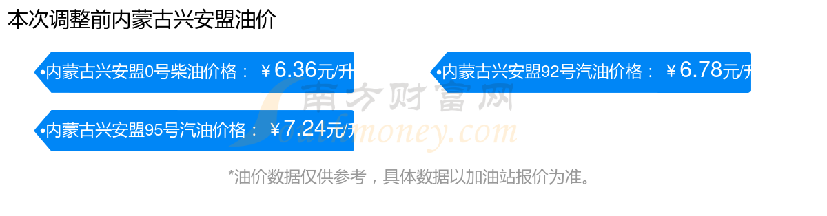 內(nèi)蒙古興安盟92號汽油11月16日最新價格為6.88元/升,為11月11日油價調(diào)整后的價格,相對上次調(diào)整時間10月28日的油價6.78元每升,增了0.1元,增1.475%。下一輪油價調(diào)整時間11月24日24時,距離現(xiàn)在還有8.31天。