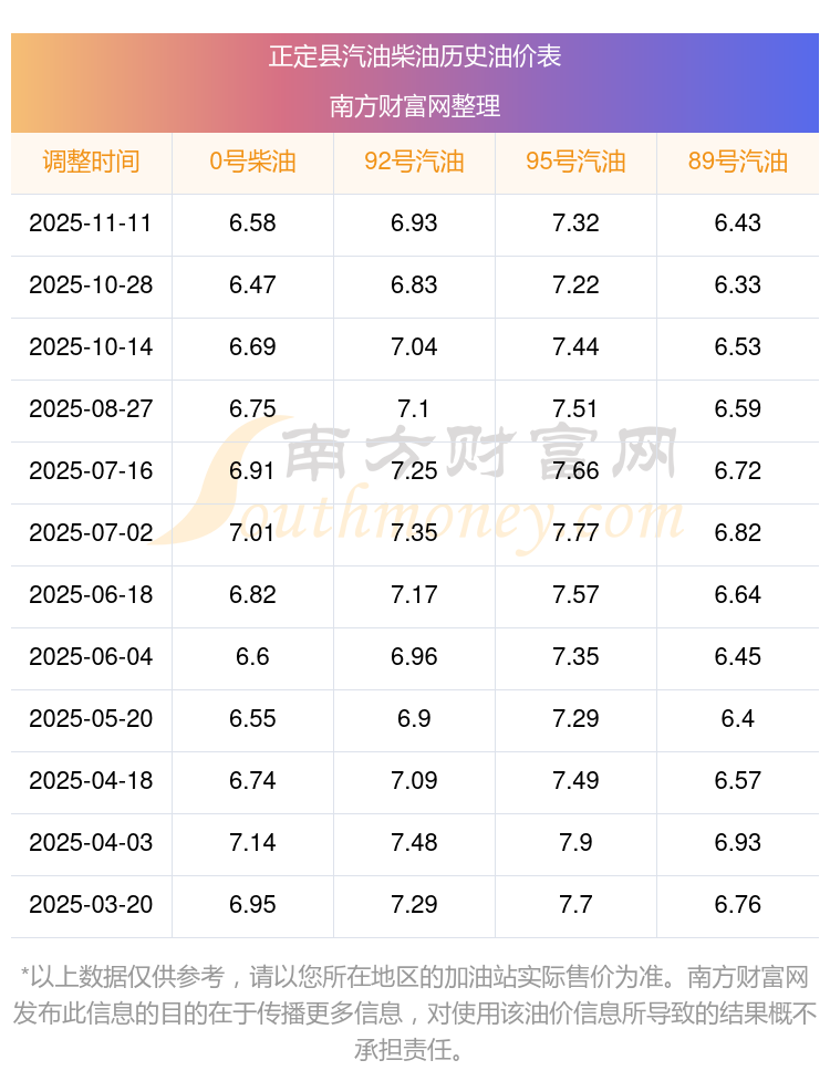 2025年正定縣汽油價(jià)格一覽表