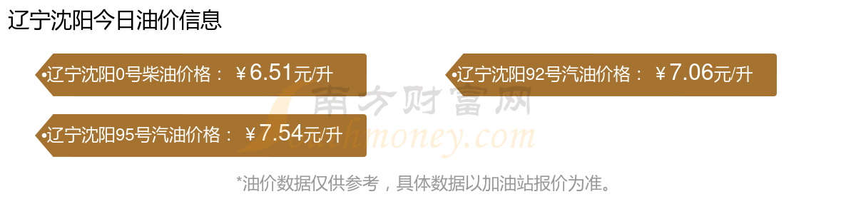 11月16日,遼寧沈陽汽油、柴油每升最新價格為:調整時間為11月11日。