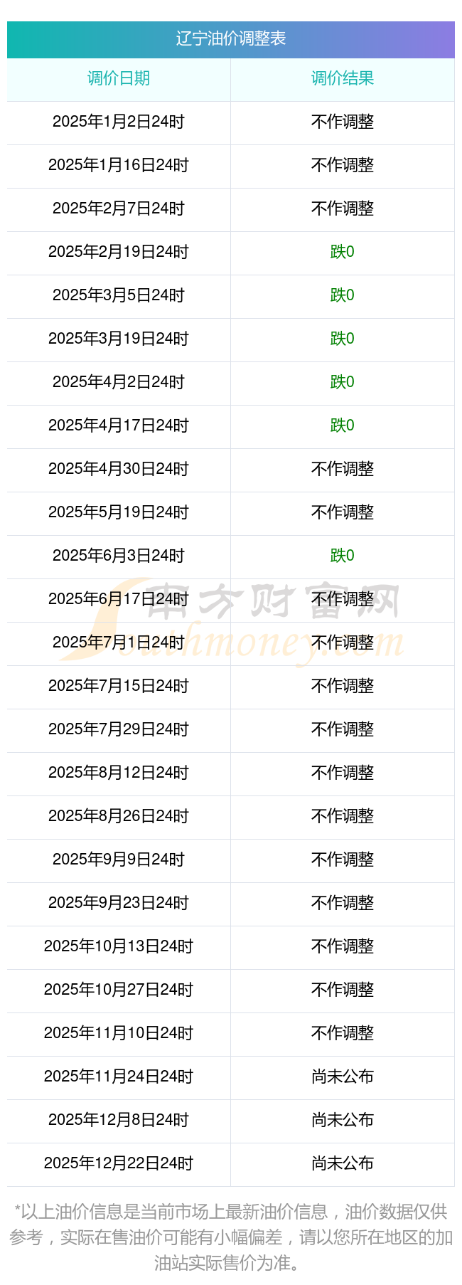2025遼寧沈陽汽油價格調整窗口時間表(11月16日更新)