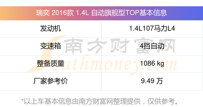 在動(dòng)力方面,瑞奕 2016款 1.4L 自動(dòng)旗艦型TOP搭載的是一臺(tái)1.4L107馬力L4自然吸氣發(fā)動(dòng)機(jī),匹配4擋自動(dòng)檔變速箱,燃料形式為汽油,常規(guī)整備質(zhì)量1086kg,廠家參考價(jià)9.49萬(wàn)元。