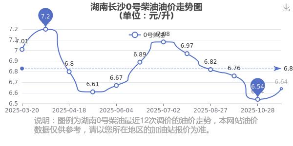 油價調(diào)整最新消息:11月16日,湖南長沙汽油、柴油價格多少錢一升?具體為:11月11日調(diào)整后,92號汽油為6.9元,漲了0.1元,漲幅達(dá)1.46%;95號汽油為7.33元,漲了0.11元,漲幅達(dá)1.46%;89號汽油為6.46元,漲了0.09元,漲幅達(dá)1.46%;0號柴油為6.64元,漲了0.1元,漲幅達(dá)1.58%。湖南長沙下一輪油價調(diào)整時間11月24日24時,距離現(xiàn)在還有8.3天。
