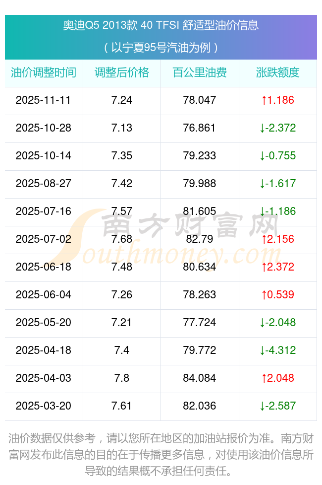 依照11月11日95號(hào)汽油最新調(diào)整價(jià)格7.24元/升來計(jì)算(以寧夏為例),該車型百公里的平均油費(fèi)是78.047元,依照上一輪10月28日調(diào)整價(jià)格7.13元/升來計(jì)算,百公里的平均油費(fèi)是76.861元,對(duì)比上一輪多花1.186元,下一輪的油價(jià)調(diào)整時(shí)間11月24日24時(shí)。