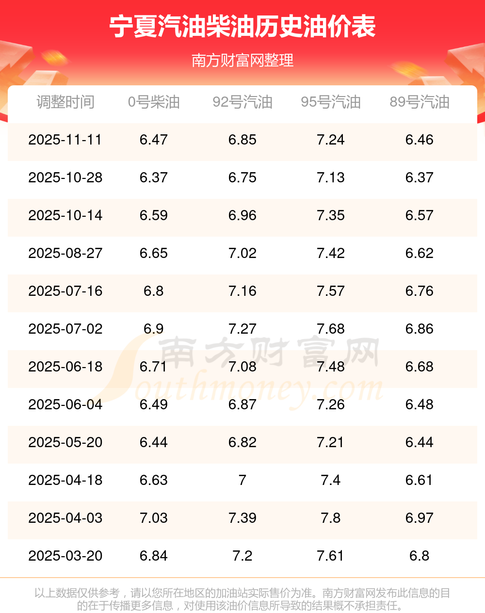 (11月16日)全國油價(jià)一覽表