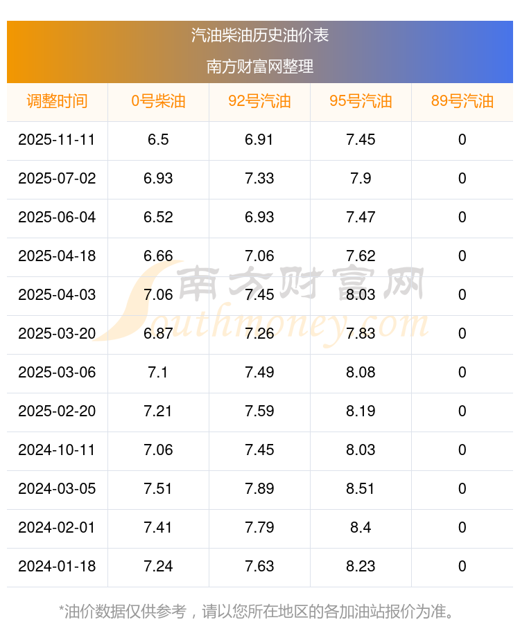 2025年汽油柴油油價(jià)調(diào)整一覽表
