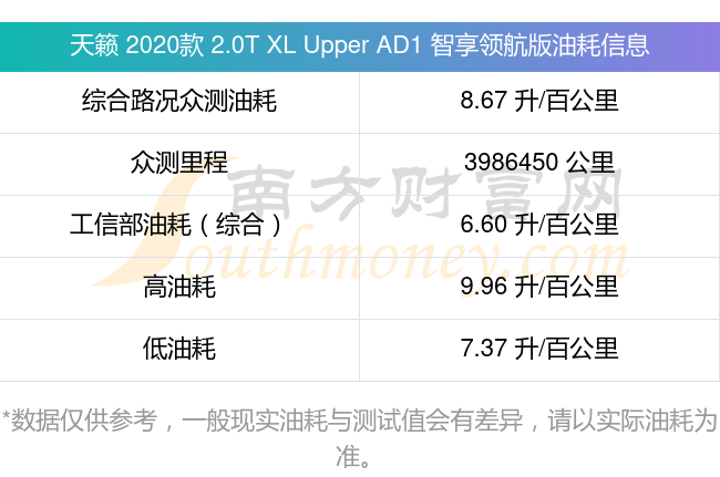 數(shù)據(jù)僅供參考,一般現(xiàn)實(shí)油耗與測(cè)試值會(huì)有差異,請(qǐng)以實(shí)際油耗為準(zhǔn)。