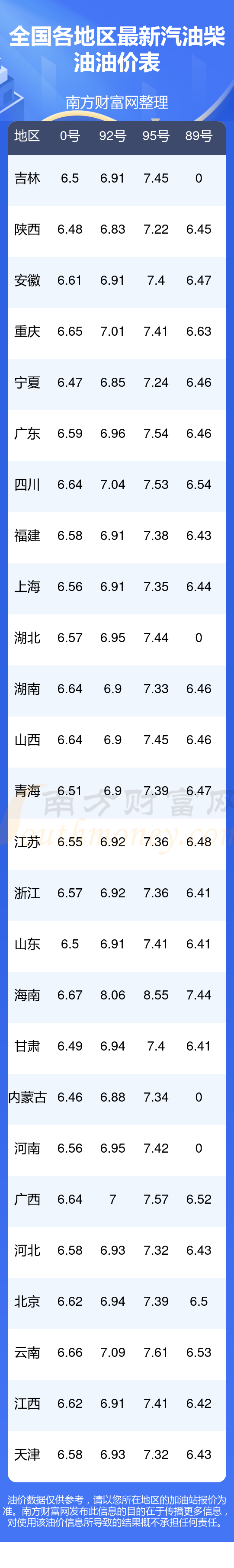 全國(guó)各地區(qū)2025年最新油價(jià)表