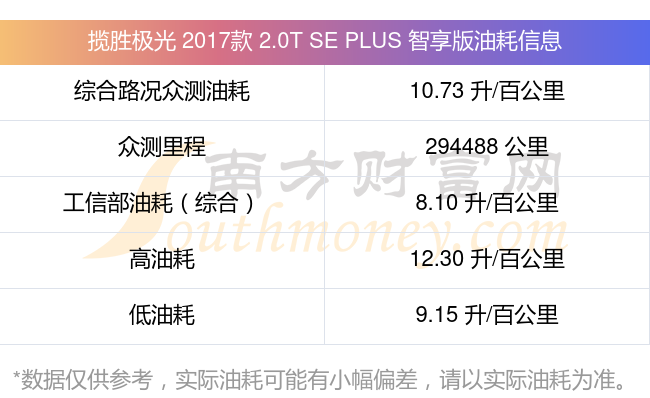 根據(jù)多位車主實測得出數(shù)據(jù),該車型低油耗為9.15升每百公里,高油耗為12.30升每百公里,綜合路況眾測油耗為10.73升每百公里,工信部綜合油耗為8.10升每百公里。