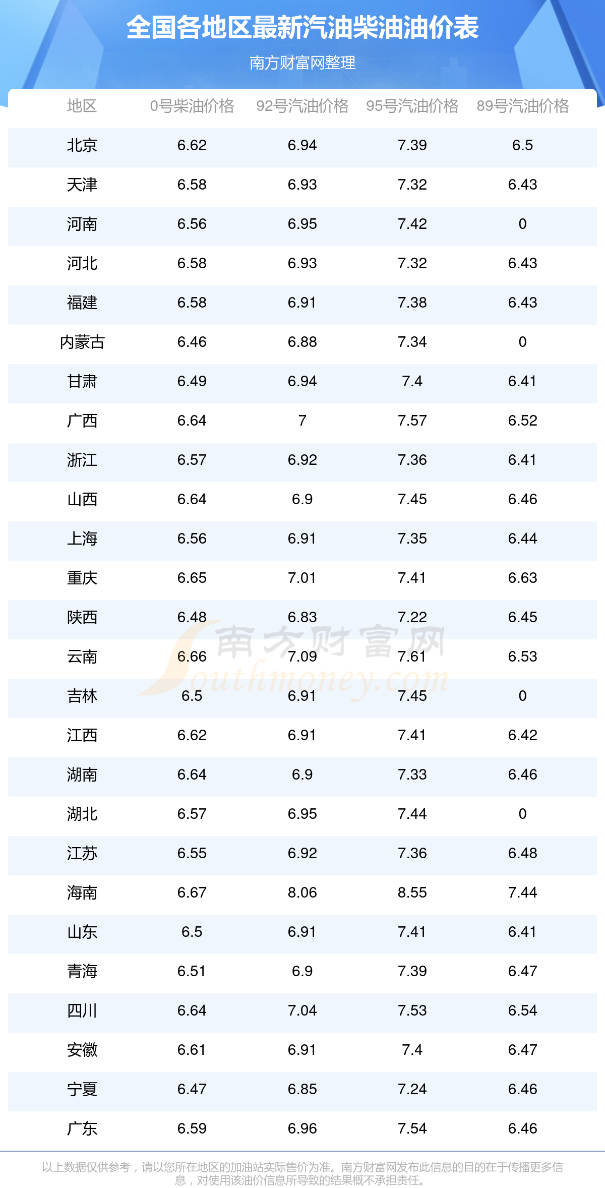 2025年11月16日全國油價調(diào)整及最新汽油價格表