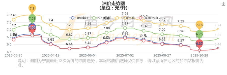 最近12次調(diào)價(jià)的油價(jià)走勢圖