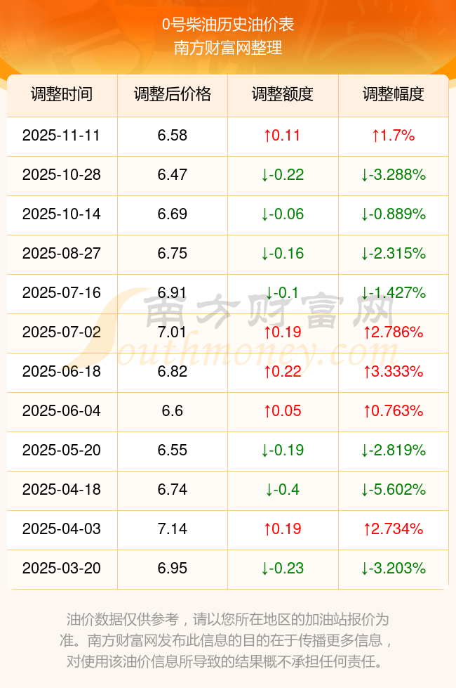 油價(jià)數(shù)據(jù)僅供參考,請(qǐng)以您所在地區(qū)的加油站報(bào)價(jià)為準(zhǔn)。南方財(cái)富網(wǎng)發(fā)布此信息的目的在于傳播更多信息,對(duì)使用該油價(jià)信息所導(dǎo)致的結(jié)果概不承擔(dān)任何責(zé)任。