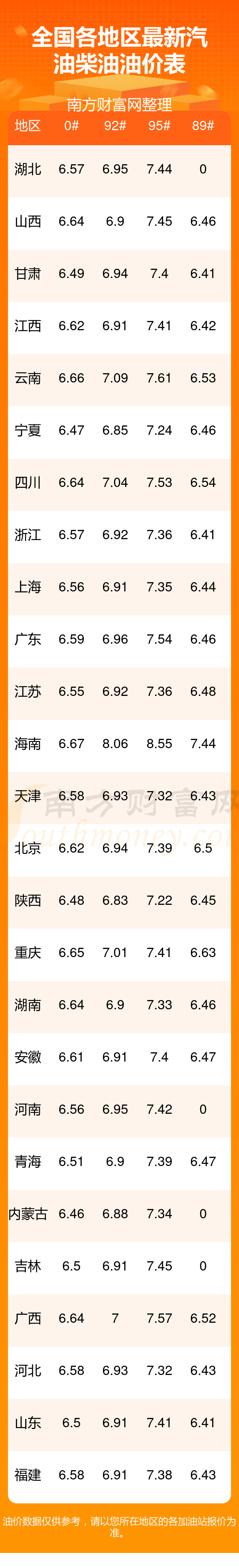 2025年11月16日全國油價調(diào)整及最新汽油價格表