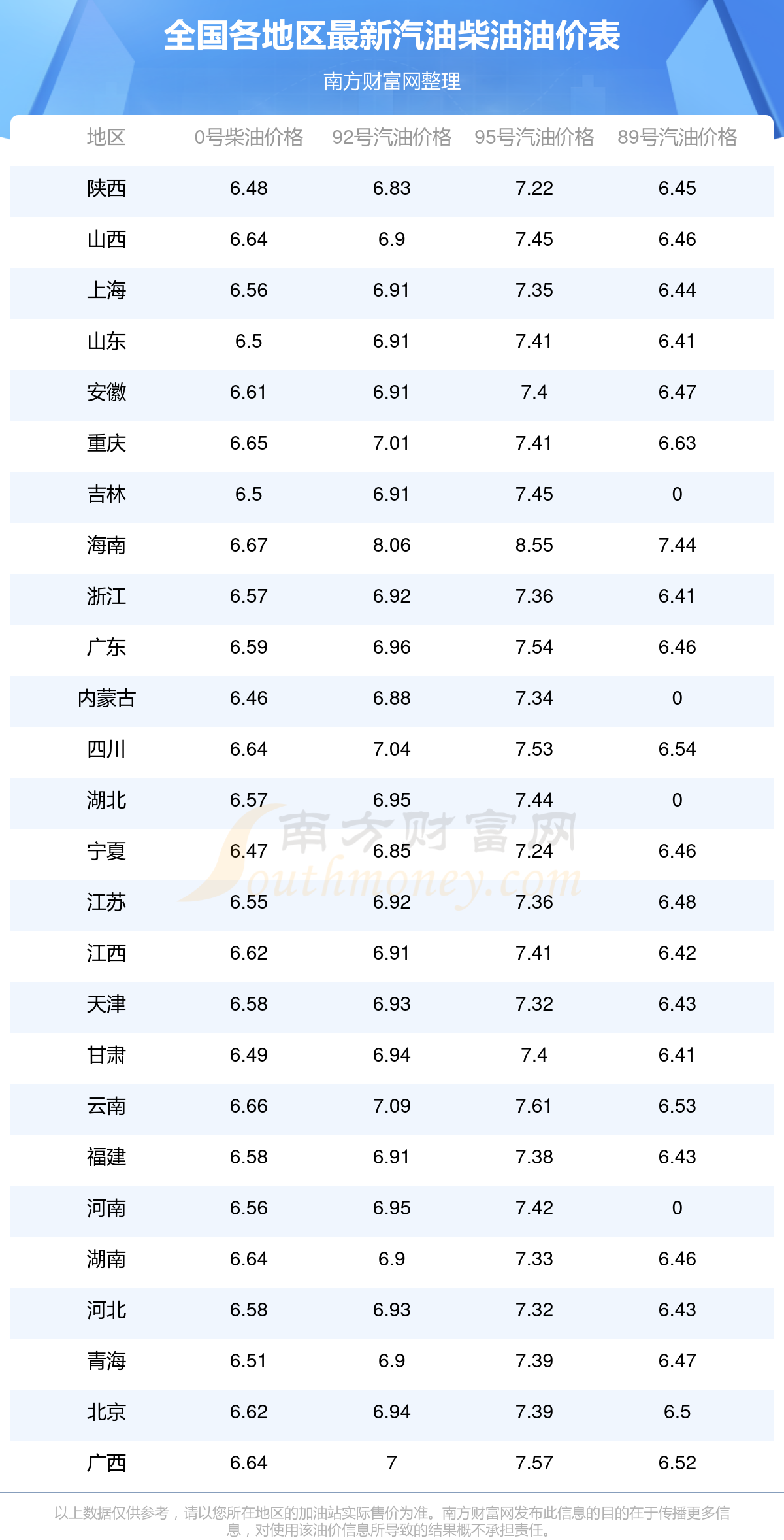 油價(jià)數(shù)據(jù)僅供參考,請(qǐng)以您所在地區(qū)的各加油站報(bào)價(jià)為準(zhǔn)。