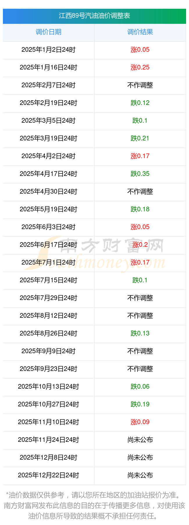 2025年油價調(diào)價窗口日期表: