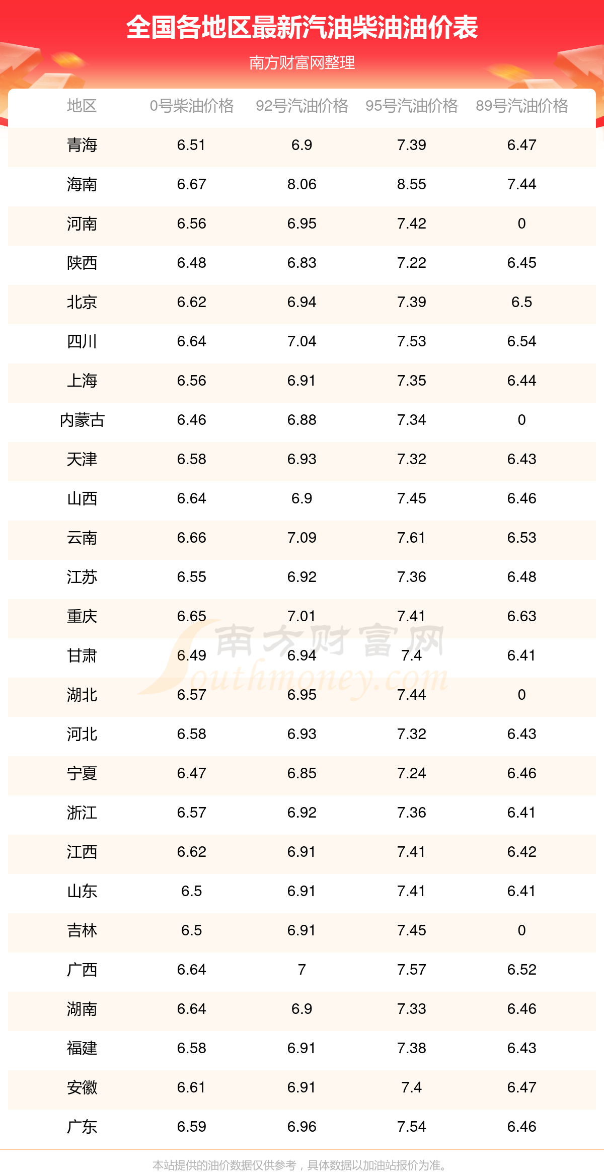 本站提供的油價數(shù)據(jù)僅供參考,具體數(shù)據(jù)以加油站報價為準(zhǔn)。
