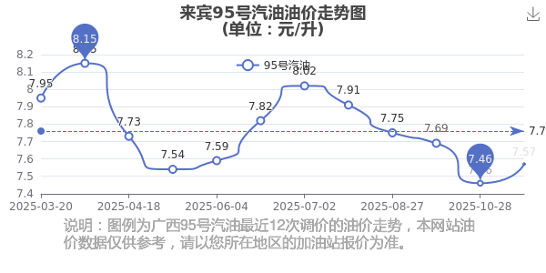 來賓汽油、柴油11月16日每升最新價(jià)格:92號汽油為7元;95號汽油為7.57元;89號汽油為6.52元;0號柴油為6.64元,本輪油價(jià)調(diào)整時(shí)間為11月11日。