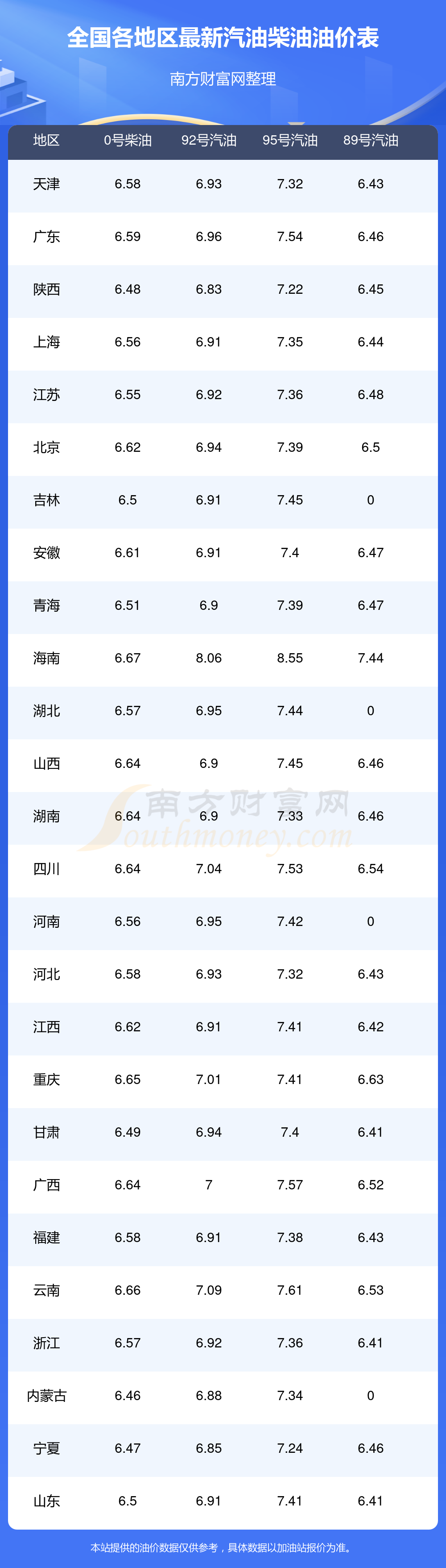 油價數(shù)據(jù)僅供參考,請以您所在地區(qū)的加油站報價為準。南方財富網(wǎng)發(fā)布此信息的目的在于傳播更多信息,對使用該油價信息所導(dǎo)致的結(jié)果概不承擔(dān)任何責(zé)任。