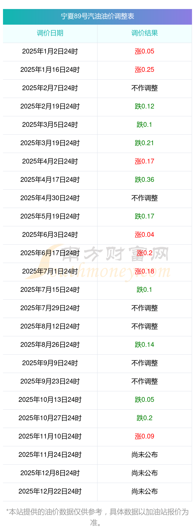 2025年青銅峽油價(jià)調(diào)整日歷時(shí)間表