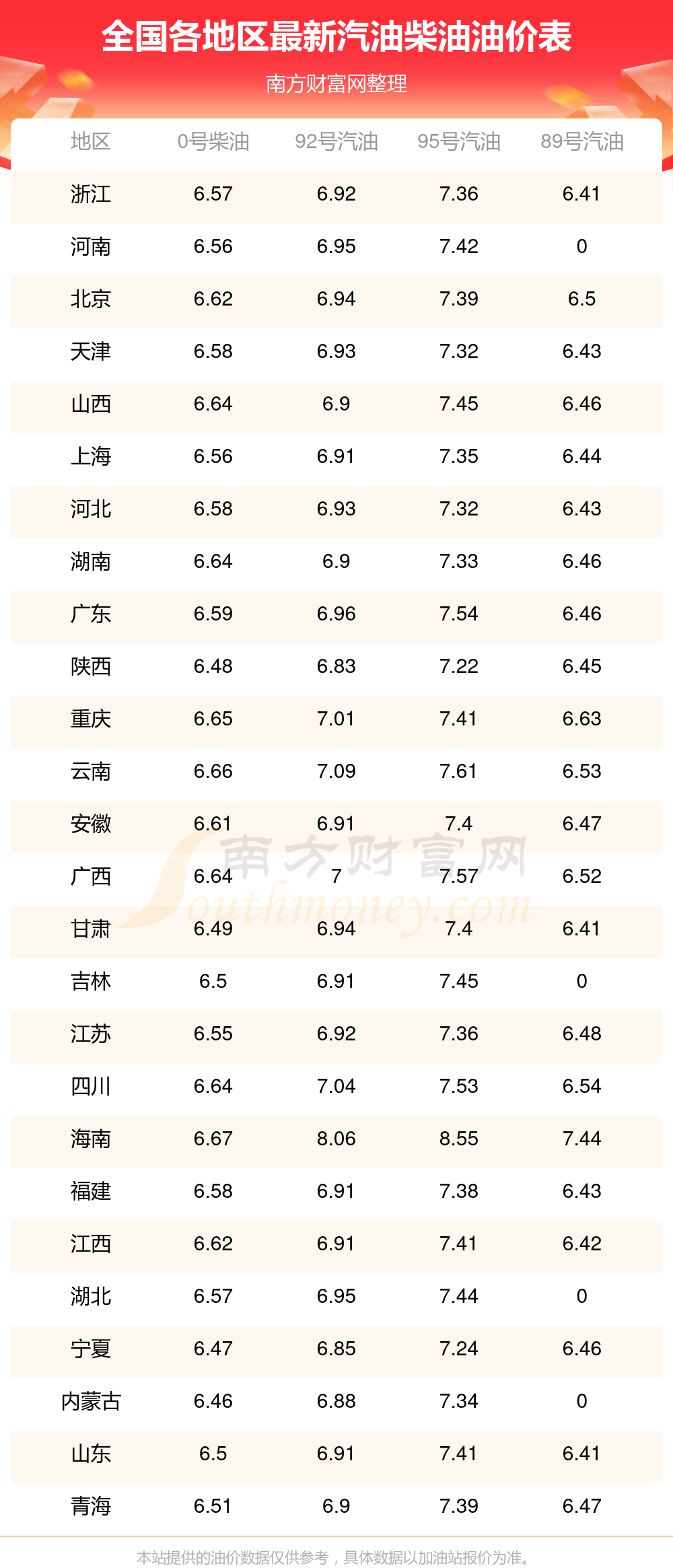 2025年11月16日全國油價(jià)調(diào)整及最新汽油價(jià)格表