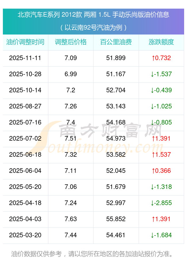 按11月11日92號汽油最新調(diào)整價(jià)格7.09元每升來計(jì)算(以云南為例),該車型百公里平均油費(fèi)為51.899元,按上一輪10月28日調(diào)整價(jià)格6.99元每升來計(jì)算,百公里平均油費(fèi)為51.167元,對比上一輪多花0.732元,下一輪油價(jià)調(diào)整時(shí)間為11月24日24時(shí)。