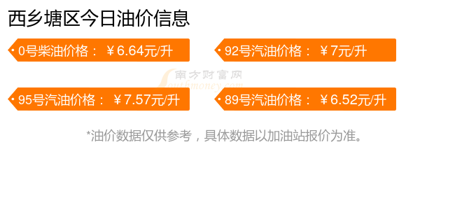 11月16日西鄉(xiāng)塘區(qū)汽油、柴油每升的價格詳情如下:92號汽油7元,上漲了0.1元;95號汽油7.57元,上漲了0.11元;89號汽油6.52元,上漲了0.09元;0號柴油6.64元,上漲了0.1元,本次油價的調整時間為11月11日。