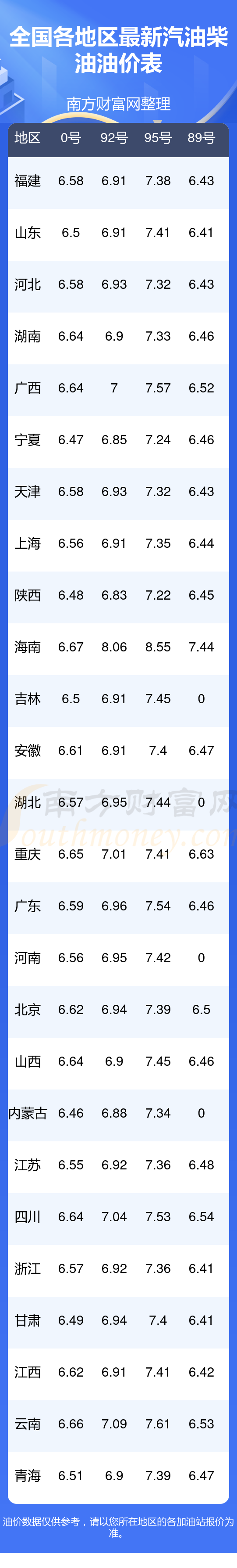 2025年11月16日全國油價調(diào)整及最新汽油價格表