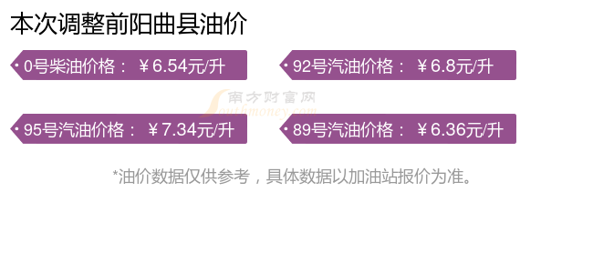 油價(jià)數(shù)據(jù)僅供參考,請(qǐng)以您所在地區(qū)的加油站報(bào)價(jià)為準(zhǔn)。南方財(cái)富網(wǎng)發(fā)布此信息的目的在于傳播更多信息,對(duì)使用該油價(jià)信息所導(dǎo)致的結(jié)果概不承擔(dān)任何責(zé)任。