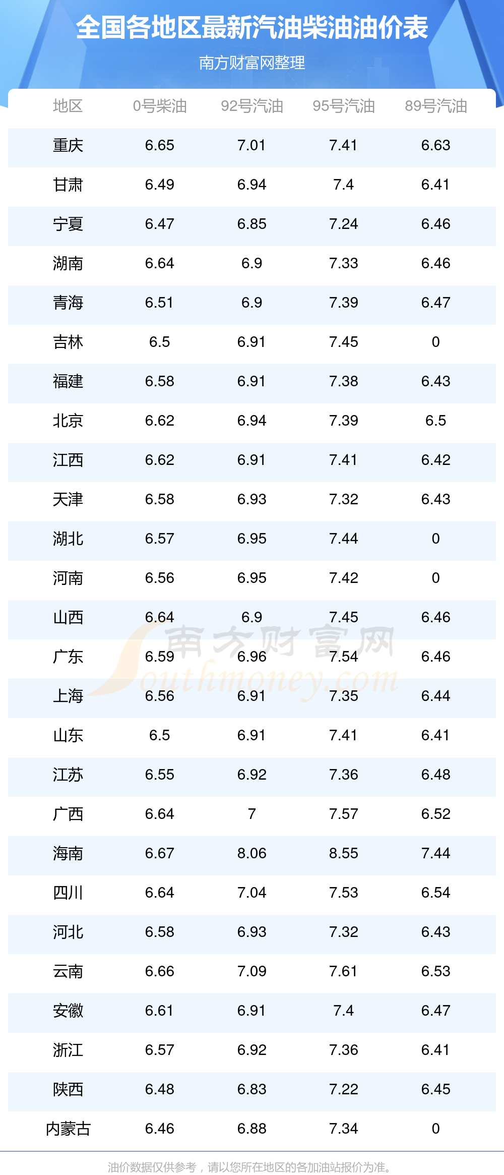 2025年呼和浩特武川縣11月16日汽油價格一覽表