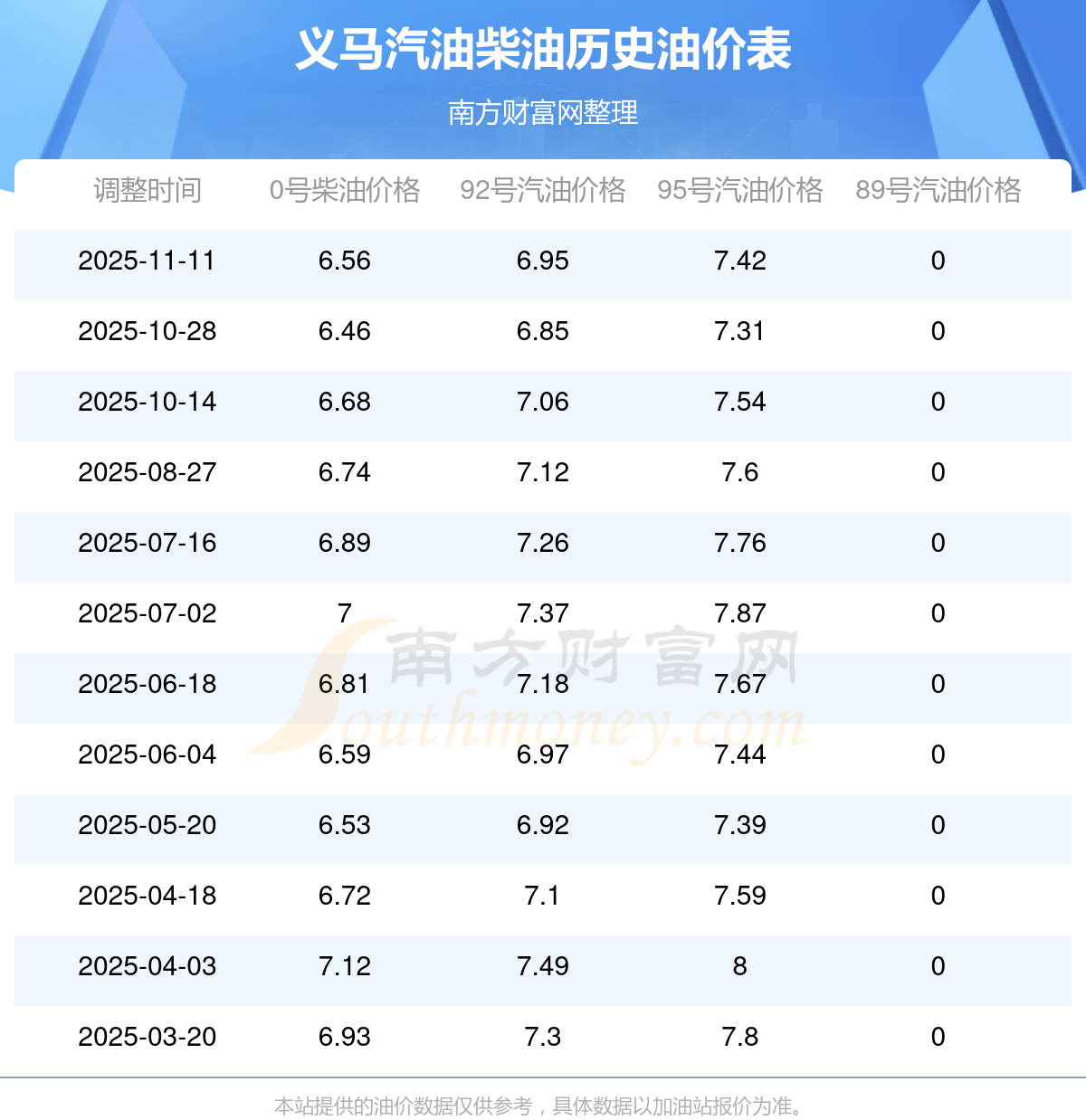 最近一次油價調(diào)整最新價格表