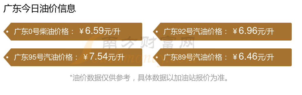 廣東深圳汽油柴油11月16日每升的價(jià)格為11月11日調(diào)整后的價(jià)格,各油價(jià)詳情如下:92號(hào)汽油6.96元;95號(hào)汽油7.54元;89號(hào)汽油6.46元;0號(hào)柴油6.59元。