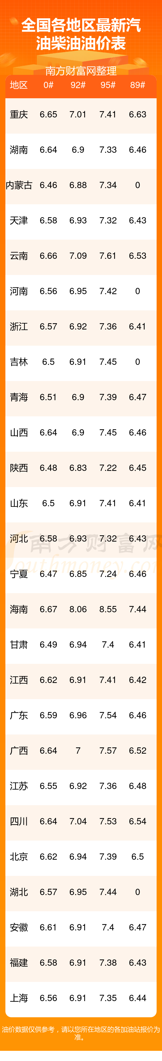 2025年11月16日全國油價(jià)調(diào)整及最新汽油價(jià)格表