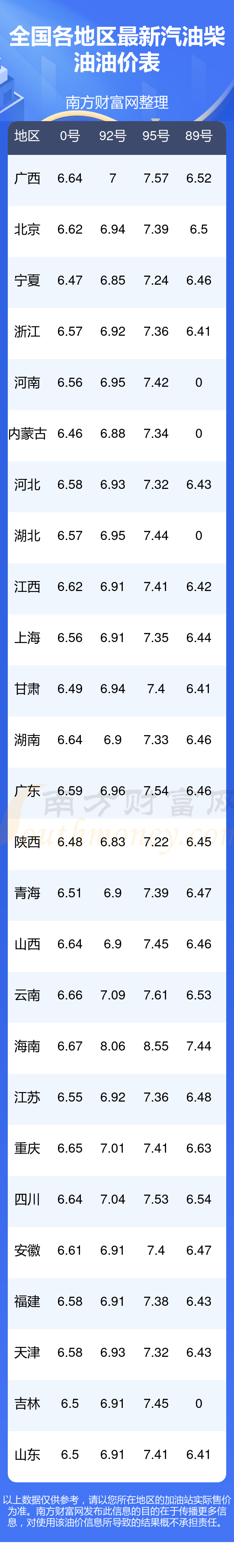 附:最新全國(guó)汽油、柴油價(jià)格一覽表
