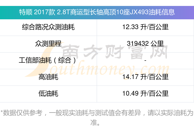 根據(jù)車主實(shí)測(cè)數(shù)據(jù),該車型低油耗為10.49升/百公里,高油耗為14.17升/百公里,綜合路況眾測(cè)油耗為12.33升/百公里。